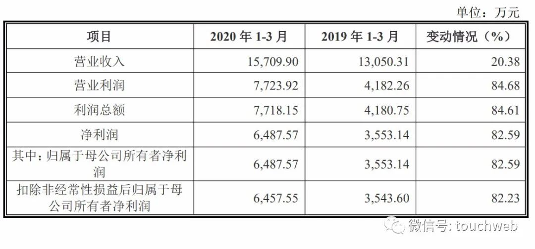 康华生物2020年1-3月,公司实现营业收入1.57亿元,较上年同期增加20.38%;实现营业利润7,723.92万元,较上年同期增加84.68%;实现归属于母公司股东的净利润6,487.57万元,较上年同期增加82.59%;