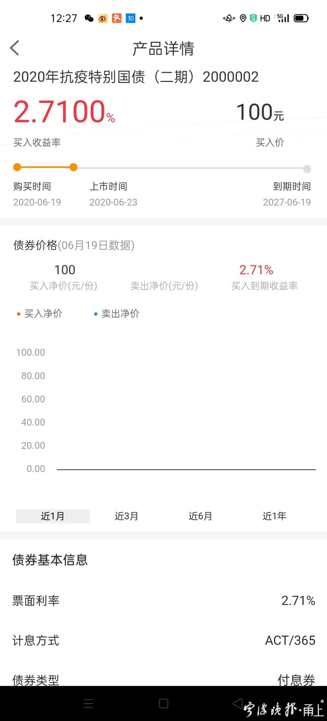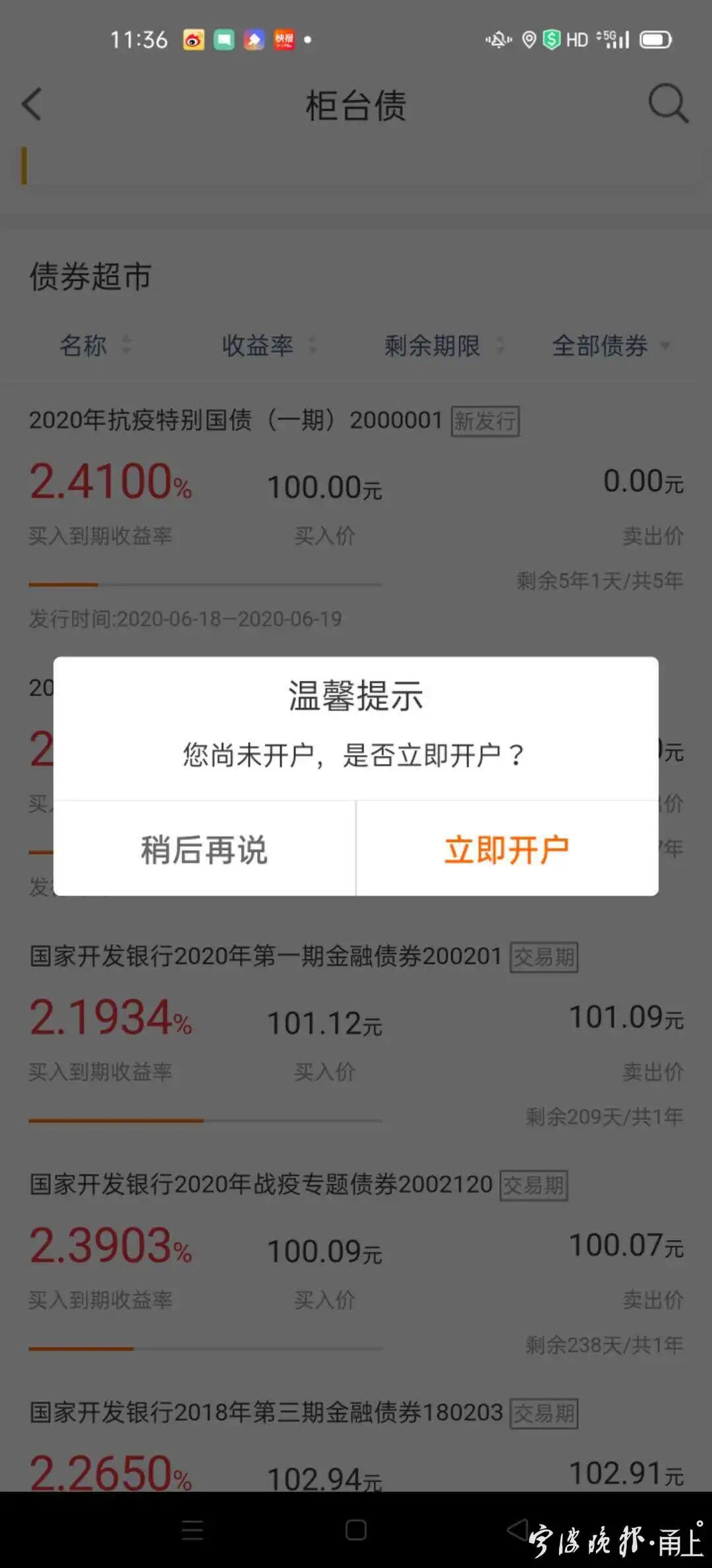 “如果分销期内没有买到抗疫特别国债,可以等到上市交易期去二级市场上购买。”农行宁波市分行有关工作人员,抗疫特别国债与一般记账式国债相同,不可提前兑取,可在二级市场交易,交易价格根据市场情况波动,盈亏由投资者自负。